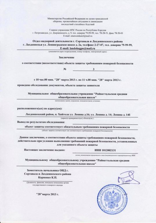 • Места проведения государственной итоговой аттестации: Республика Карелия, г. Лахденпохья, ул. Садовая, дом 22