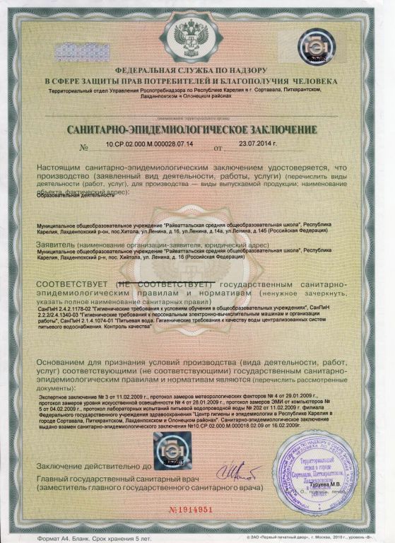 Санитарно-эпидемиологическое заключение (скачать) (посмотреть)